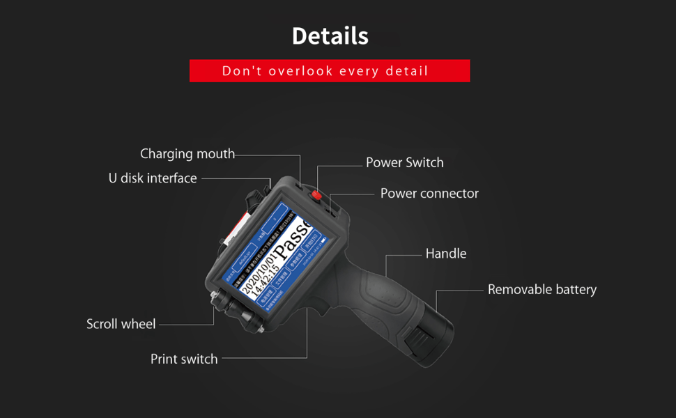 A smart date and lot number printer, handheld batch coding and printing machine.
